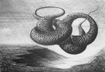 1982In Amerika zijn enorme zand afgravingen en een legende is dat er in het zand grote slangen huisden. Deze slang heeft zich net verheft uit het zand.