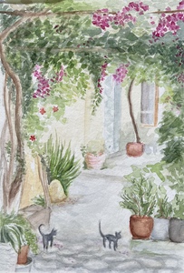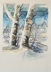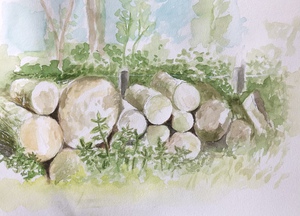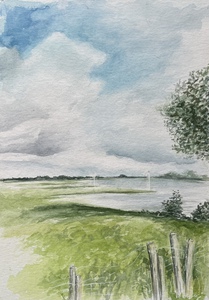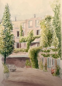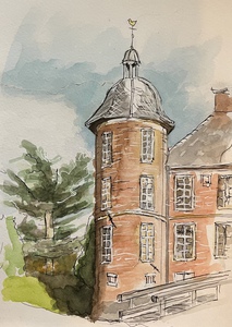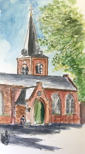 Aquarel (21 x 29 cm) Achter het landgoed Sandwijck in De Bilt staat deze bijzondere folly in de vorm van een (schijn)kapel.